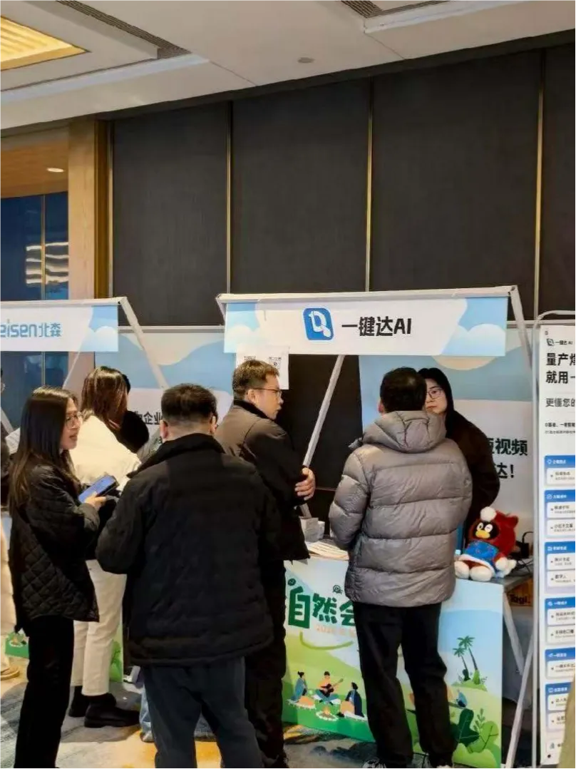 与此同时,一键达AI精心布置的专属展台也成为现场焦点,凭借核心业务优势吸引了大批参会者驻足咨询,现场人气持续高涨,充分展现了行业对前沿AI能力的高度关注。