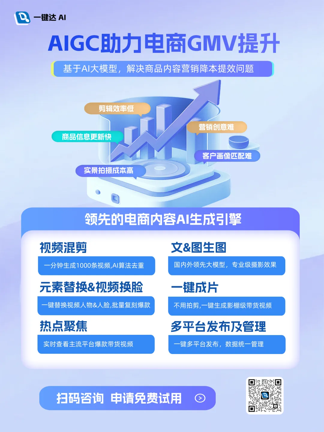 未来,一键达AI将继续深耕AI领域,秉持专业与创新精神,不断打磨技术方案与服务体系,以AIGC为核心引擎,深耕电商场景赋能、助力商家突破增长瓶颈,为电商行业高质量发展注入更多活力。一键达AI期待与更多行业伙伴携手同行,共赴电商行业高质量增长新征程。