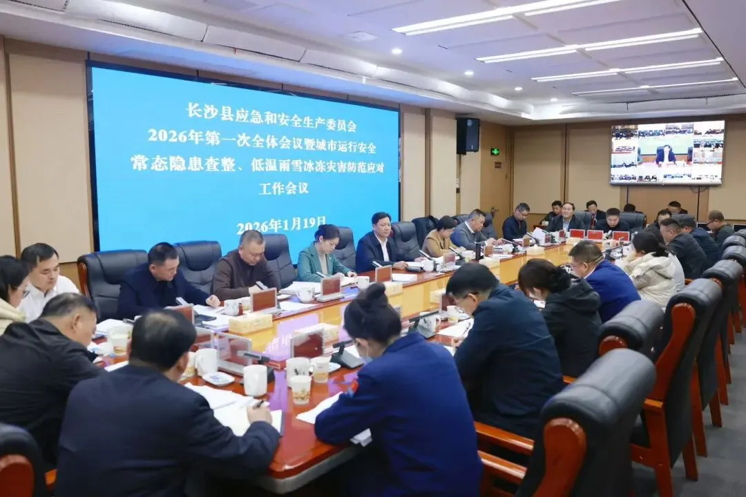 1月19日,长沙县应急和安全生产委员会2026年第一次全体会议暨城市运行安全常态隐患查整工作会议召开,解读学习《长沙市城市运行安全常态隐患查整机制工作方案》,通报全县安全生产工作情况,分析研判天气及安全生产工作形势,部署本轮低温雨雪冰冻天气防范应对、春节前后安全生产及城市运行安全常态隐患查整工作。长沙县委副书记、县长陈永高出席并讲话。