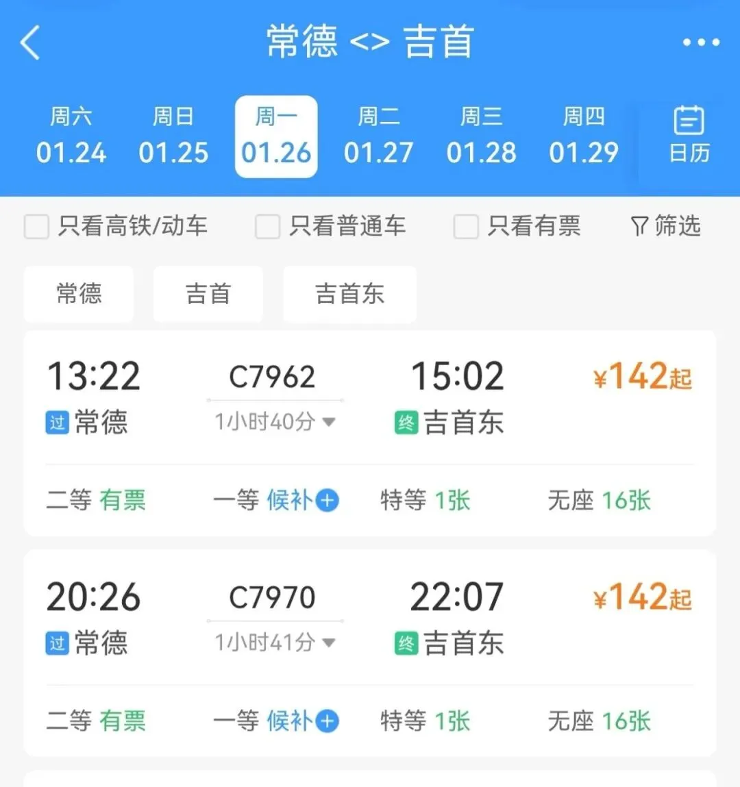 据悉,本次调图新增列车为C7962次常德—吉首东,13时22分常德站发车,15时03分到达吉首东站; C7970次常德—吉首东,20时26分常德站发车,22时07分到达吉首东站。