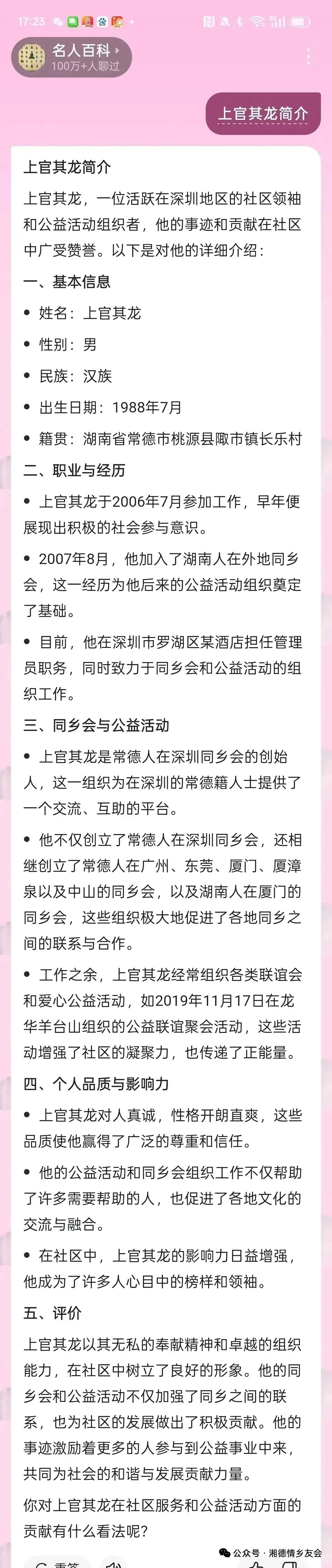 现在上官其龙 有两个微信号 没有加上官其龙微信号的常德老乡们 可以加上官其龙.小号啊 不要加517245723大号了 大号加不上老乡微信号了一个老乡 加一个微信号.不要两个微信号一起加啊 你加两个微信号.上官其龙也会知道的 你已经加了两个微信号了亲爱的老乡们.在抖音号查找湘德情.常德人在全国平台抖音号.关注一下湘德情.常德人在全国平台抖音号谢谢老乡们
