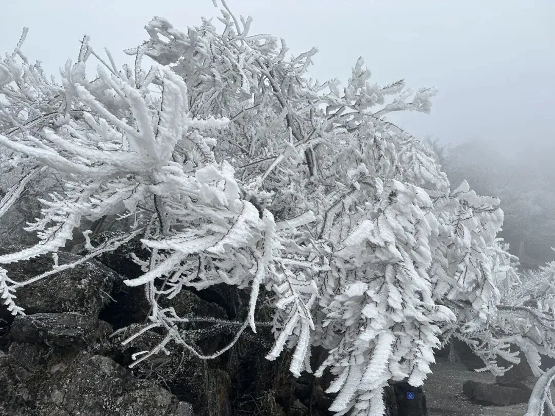 山顶雾凇遍野、凝霜挂雪