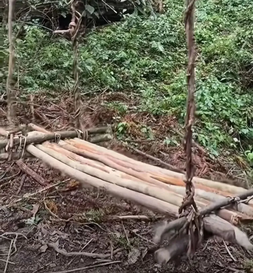 地上铺点竹叶子,身上盖点竹叶子,头下枕个木棍子。