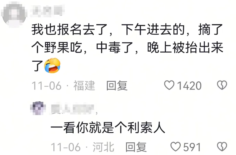 比赛内容很简单,就是让人们不带食物上山,挑战在荒山野岭里生存,看谁坚持得最久。