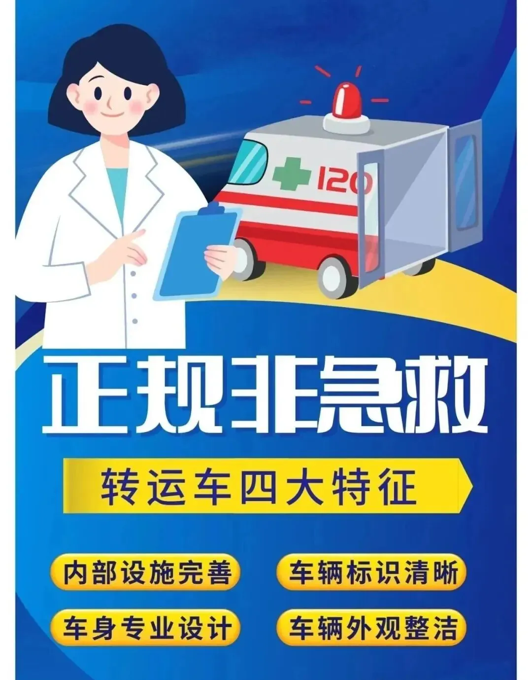 咱们的服务优势很实在:有专业医护人员随行,急救经验丰富,全程留意患者状态,从容应对各类突发情况;所有车辆都是合规救护车,呼吸机、除颤仪、担架床等急救设备一应俱全,适配不同患者的转运需求;24小时随时响应,随叫随到,还会规划最优路线,尽量节省转运时间,让途中更安心。