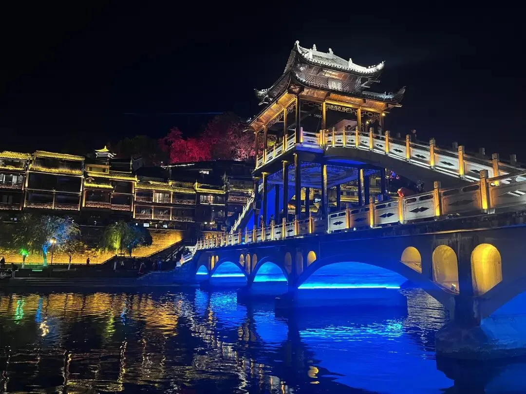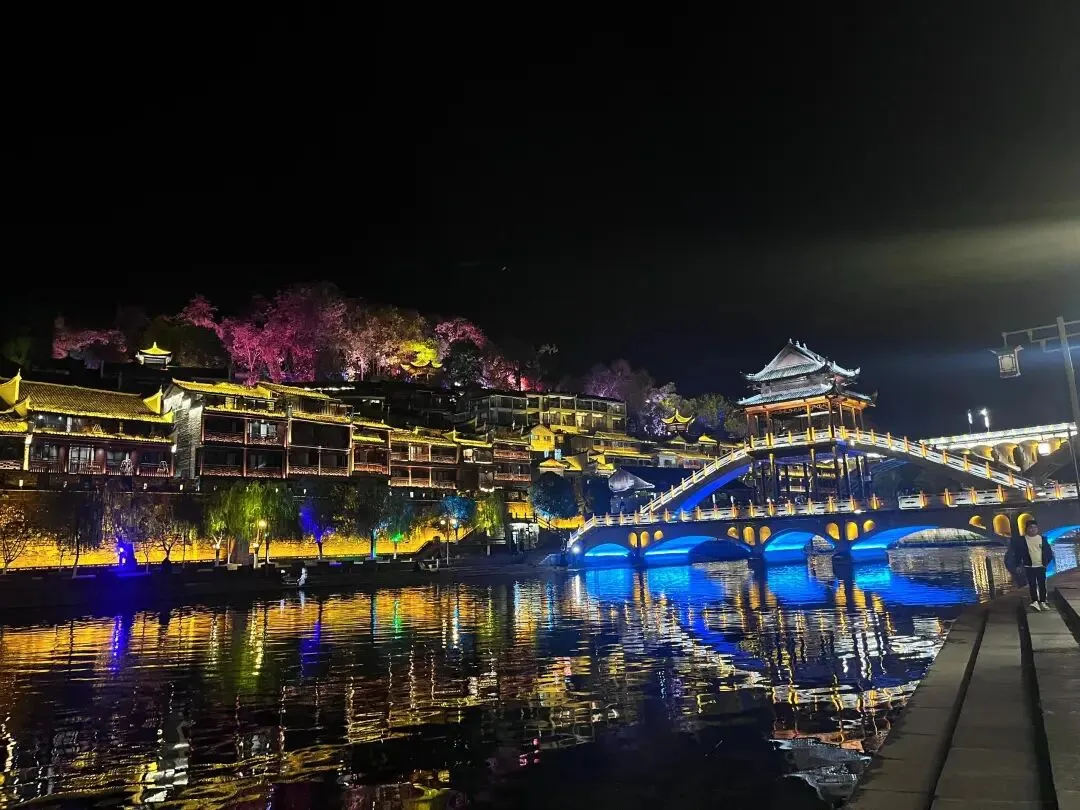 下午五点逛完武陵源,直接打顺风车去张家界西站,直奔凤凰古城!七点到凤凰古城站,出站就有接驳车直达景区,超省心。