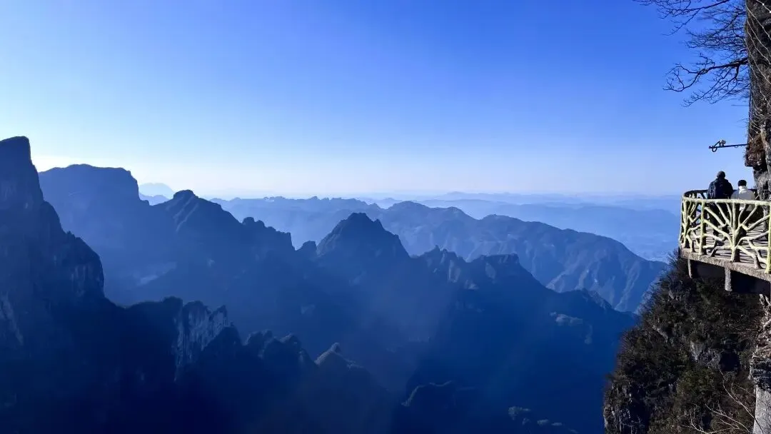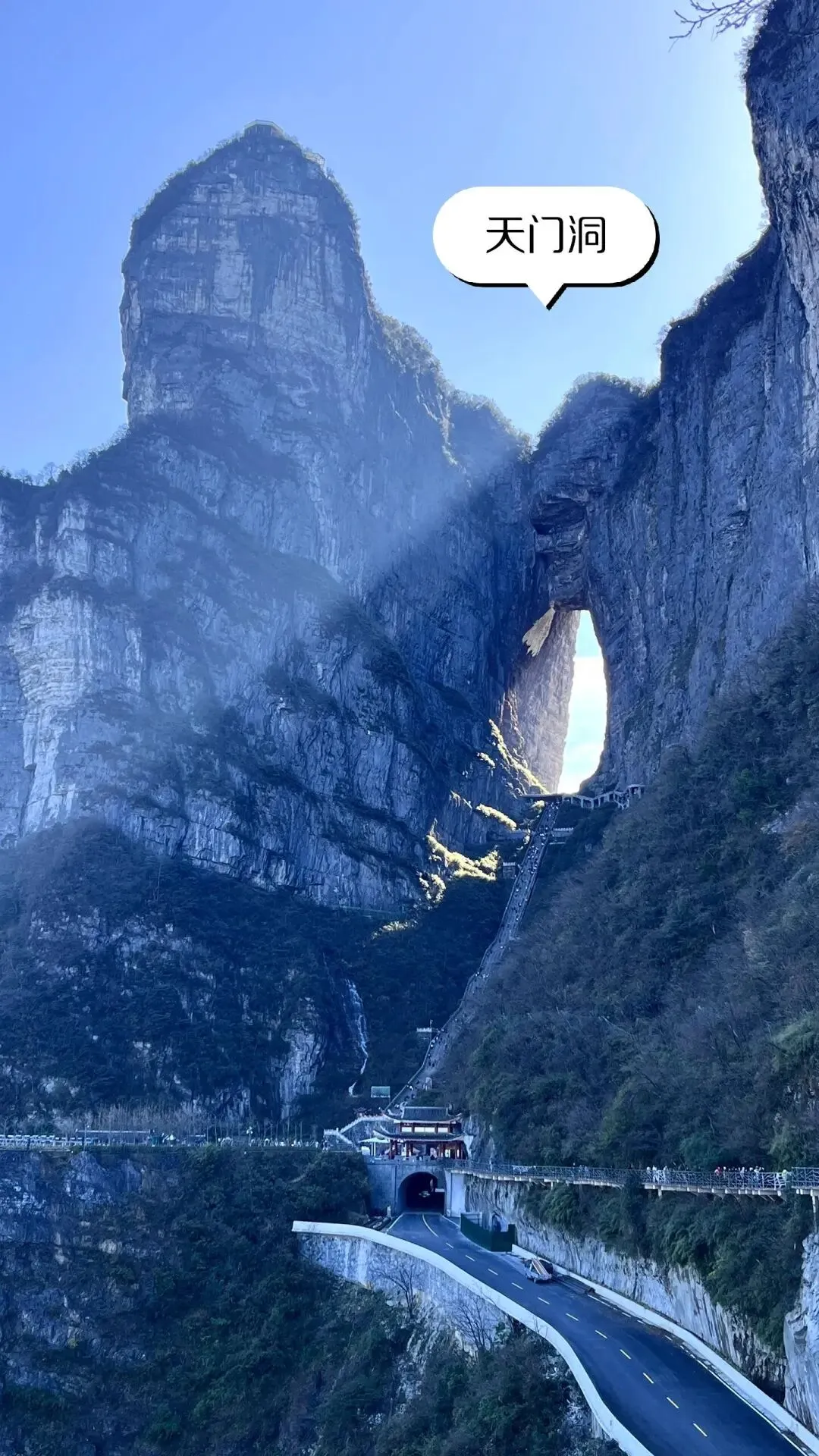 上山后跟着指示牌走就行,天梯→玻璃桥→开放缆车,一路逛下来超顺,根本不用费脑子找路。站在玻璃桥上往下看,云雾缭绕的山谷超震撼,恐高的宝子也能慢慢适应~下午六点多逛完天门山,直接打顺风车去武陵源。