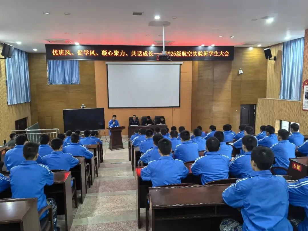 1月17日上午,常德市一中2025级航空实验班“优班风 促学风 凝心聚力 共话成长”主题学生大会在教学楼阶梯教室召开,2025级航空实验班全体师生齐聚一堂,共商班级建设大计,共话蓝天飞行梦想。