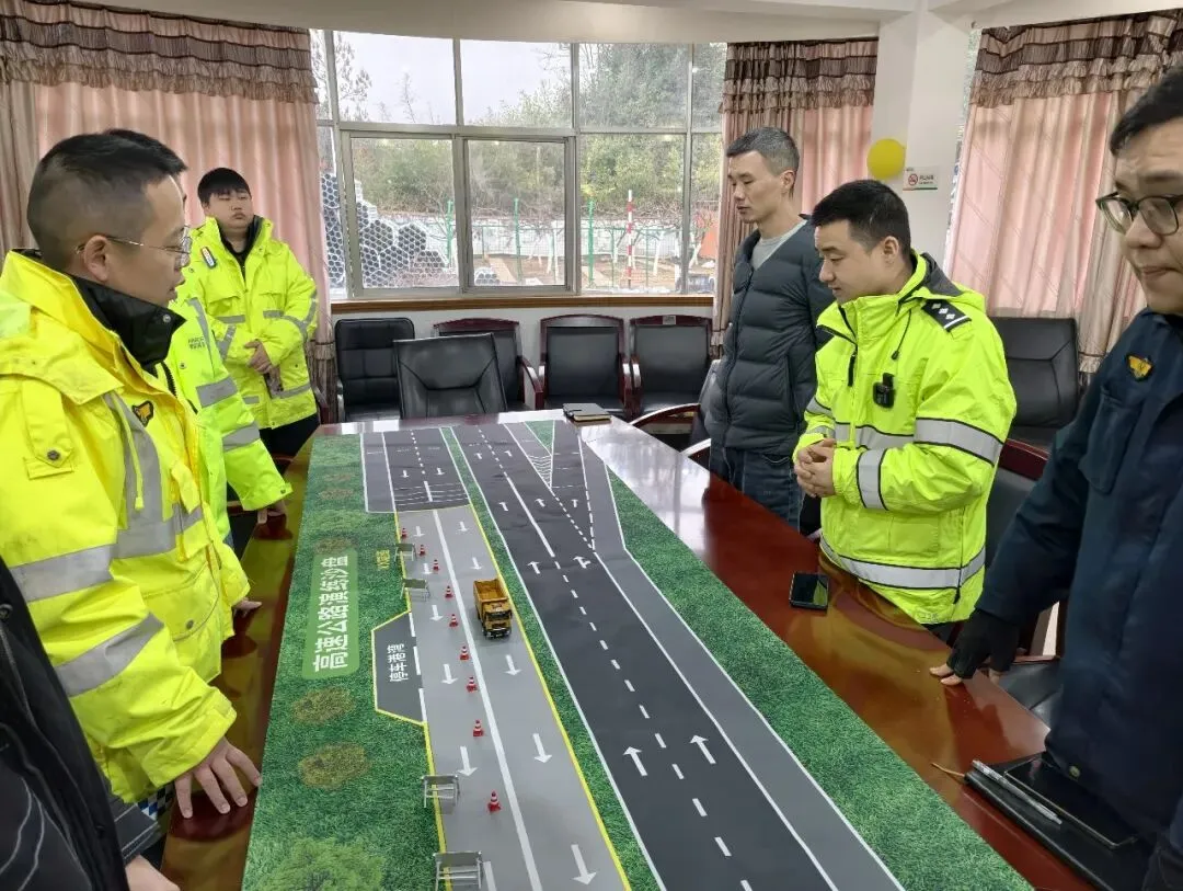 为提升极端天气下的协同处置效能,武陵源管理所联合高速交警部门等多方力量,开展冬季应急处置沙盘演练,紧扣冬季雨雪冰冻天气特点与春运车流叠加风险,以辖区高速公路易结冰、易拥堵的桥隧路段、长陡上下坡及互通枢纽为模拟场景,还原了低温冰冻天气下多车追尾、路面结冰拥堵等突发状况。