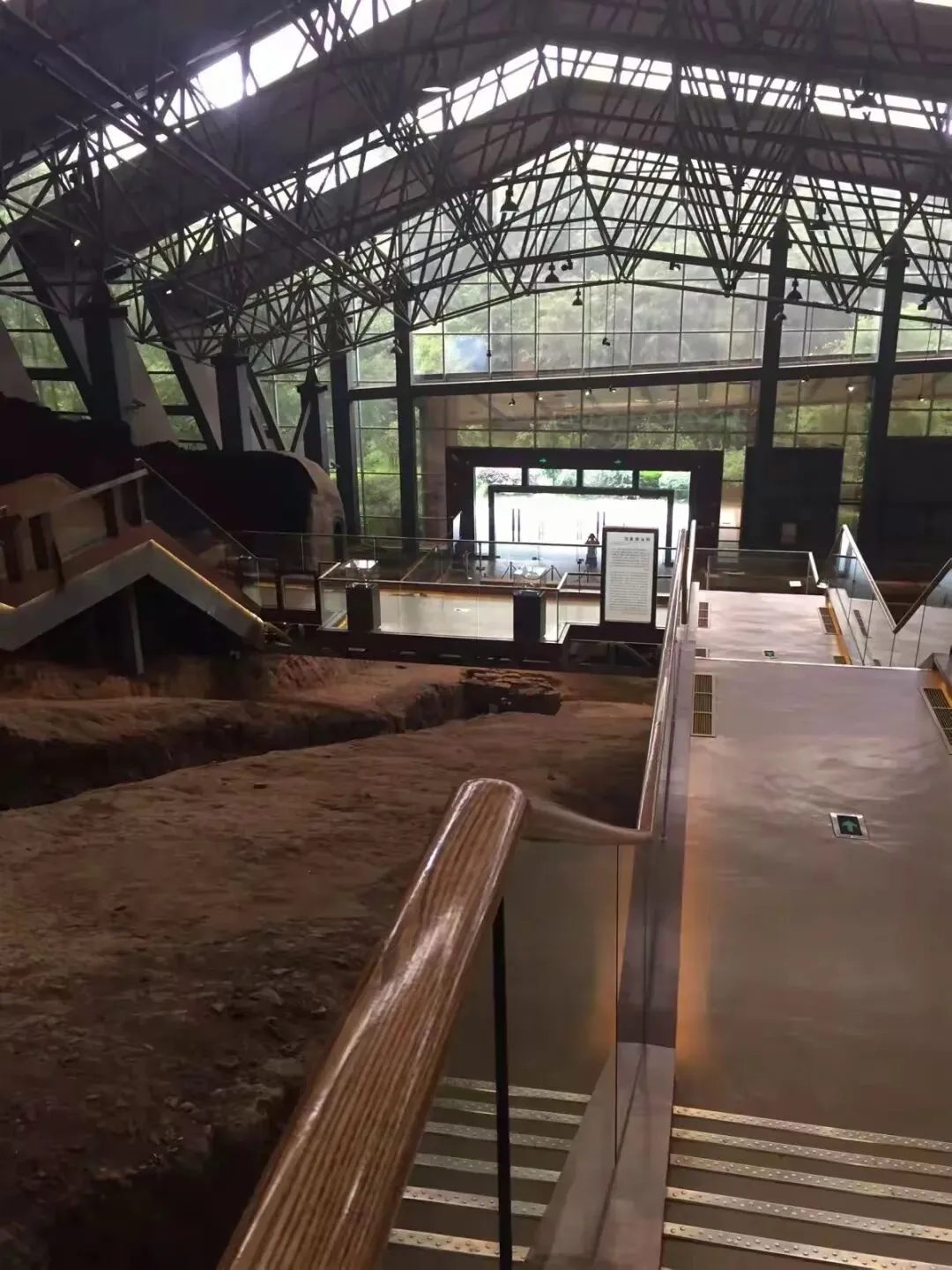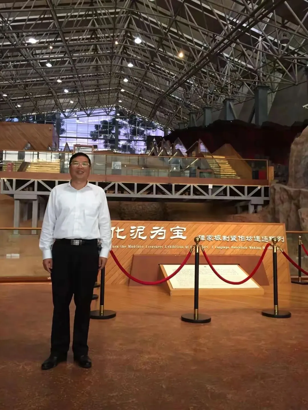 此行的重中之重,无疑是谭家坡遗迹馆。穿过一片苍翠的竹林,一座依山而建的建筑映入眼帘,其轻钢大跨结构简洁明快,陶土红的墙砖与青灰屋顶浑然一体,既尊重了遗址原貌,又不失现代设计的美感。作为世界上保存最完整的唐代龙窑遗址,谭家坡1号龙窑如一条卧龙蛰伏在山坡上,通长41米,宽度在2.8米至3.5米之间,顺着山势自然起伏,最陡处达23度,平缓处仅9度。步入馆内,脚下是透明的玻璃栈道,透过玻璃能清晰看到龙窑的窑头、窑床、窑尾三大部分,以及取泥洞、淘洗池、储泥池、陶车坑等28处制瓷遗迹,每一处都保留着考古发掘时的原貌。展厅内的声光电技术格外精妙,3D动画以龙窑现状为基础,一步步复原了唐代烧瓷的壮观场面:窑工们赤脚踩泥、拉坯塑形、蘸釉绘画,最后将满窑的瓷器点燃,熊熊火焰舔舐着窑壁,将泥土与火的艺术推向极致。在“黑石号”文物专题展厅,我看到了与沉船出水瓷器同款的执壶与碗碟,青釉褐彩的纹饰灵动飘逸,仿佛刚从窑中取出,带着盛唐的温度与气韵。据介绍,这里出土的可修复文物达上万件,它们默默诉说着当年“石渚窑”的繁华盛景,也见证了湖湘人民“敢为人先”的创新精神。