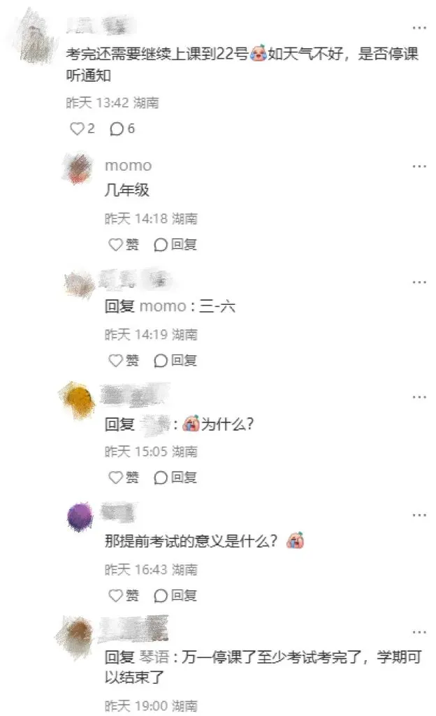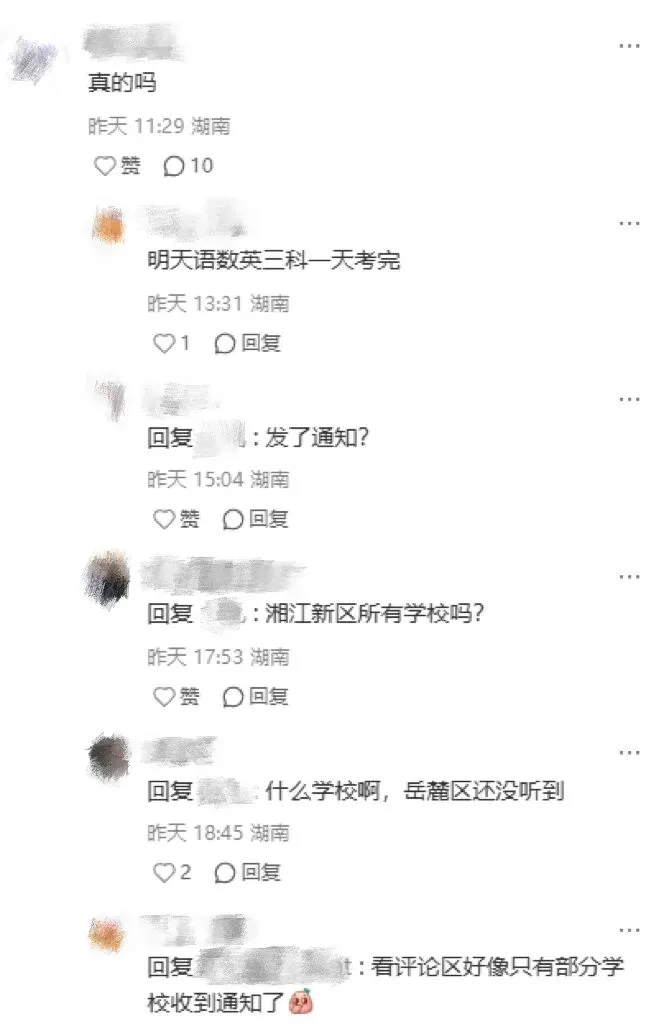 此外, 还了解到,原定于26号期末考试的长沙县小学,改到了23日考试。