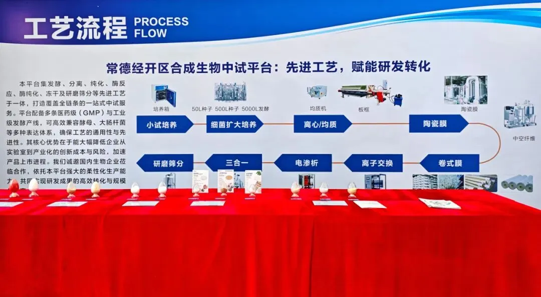 常德合成生物制造中试平台汇聚了50余套管罐系统与工艺模块,其高度的通用性与柔性设计,允许用户根据不同菌种、原料及产品特性,快速组建与切换生产工艺流程。这种灵活性与开放性,不仅大幅提升了设备利用率和生产效能,更使平台能够同时服务于内部研发转化与外部市场需求,可以面向全社会提供优质、高效的共享中试服务。