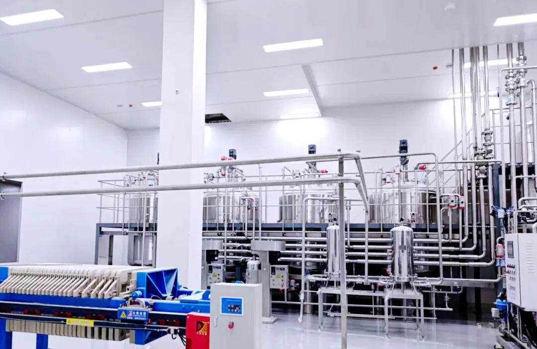 提取与纯化生产线规模灵活,可以灵活适配菌体、上清液、胞内蛋白、包涵体等各种工艺路线,核心设备包括多套12000L大型提取罐及丰富的下游分离纯化装备,如板框过滤、陶瓷膜、中空纤维膜、卷式膜等,可针对不同提取工艺及产物特性,构建从初步澄清、浓缩到精细分离的完整纯化路径,满足各类生物制品从粗提到精制的多样化需求。