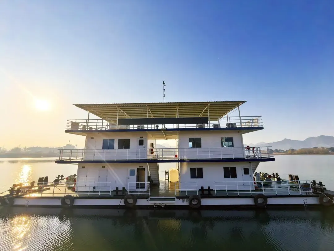石门县渔政码头建设项目是强化澧水流域生态保护的重点工程,由石门县畜牧水产事务中心具体组织实施,总投资预算400万元,分为趸船建设和岸基建设两大部分。目前,趸船建设已完成,这艘总长28米、型宽8米、型深1.5米、满载吃水0.8米的趸船,将承担起执法船停靠、物资补给、现场指挥等重要功能;岸基工程正按施工计划稳步推进,预计建成后将形成“岸船联动、功能完备”的现代化渔政执法基地。