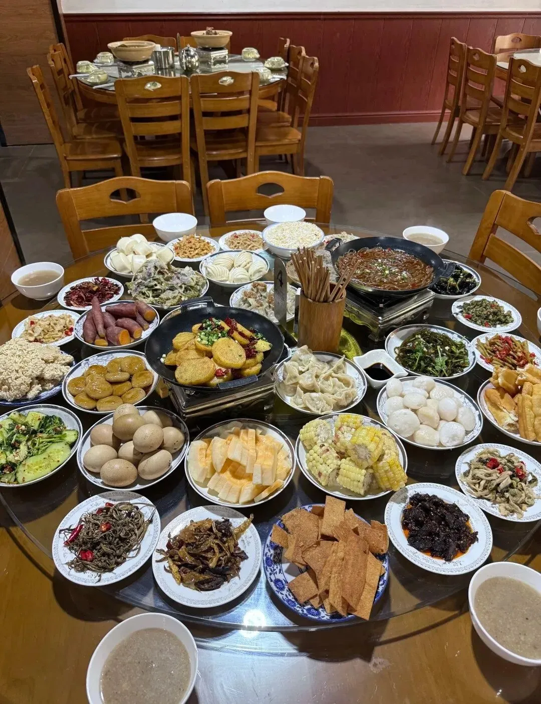 中午适合去吃擂茶,这可不是简单的喝茶,而是一桌子丰盛的“压桌菜”,酸豆角、炸花生、浸坛子菜,摆满一桌,汤一喝,人就醒了