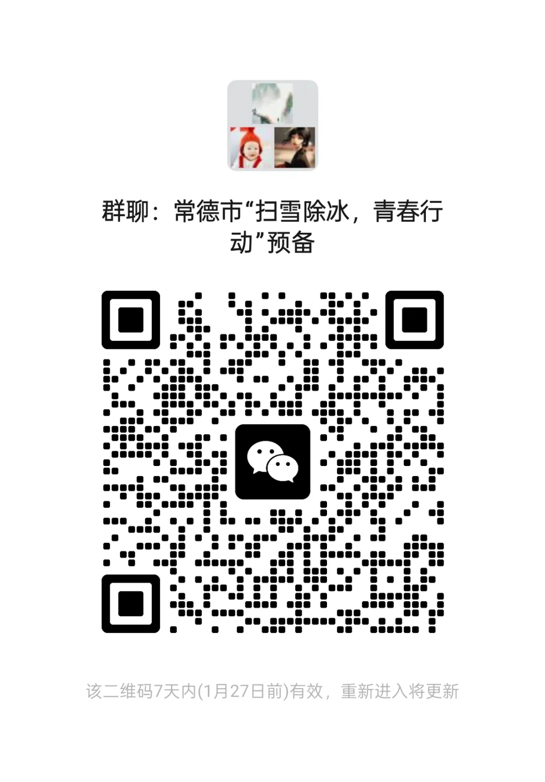 【扫码集结】:即刻扫描下方二维码,加入常德市“扫雪除冰,青春行动”预备群。联系方式: