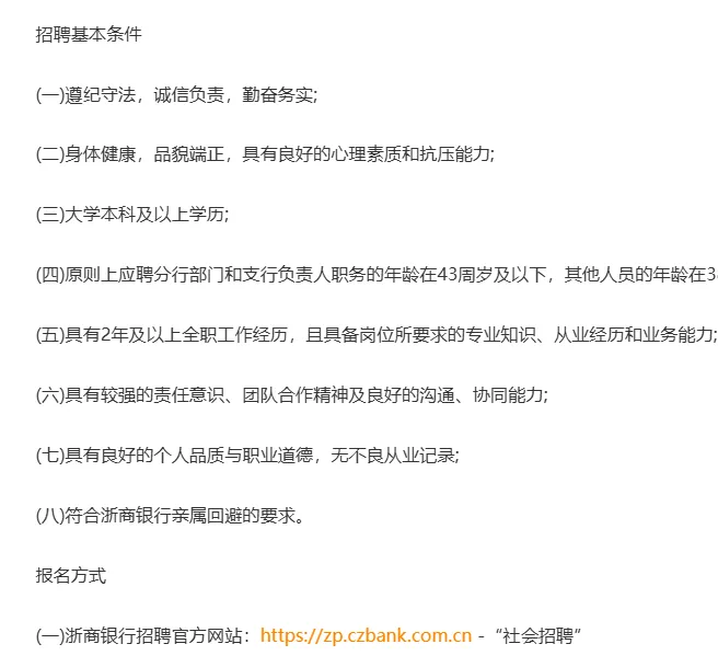 浙商银行长沙分行2026年社会招聘启事