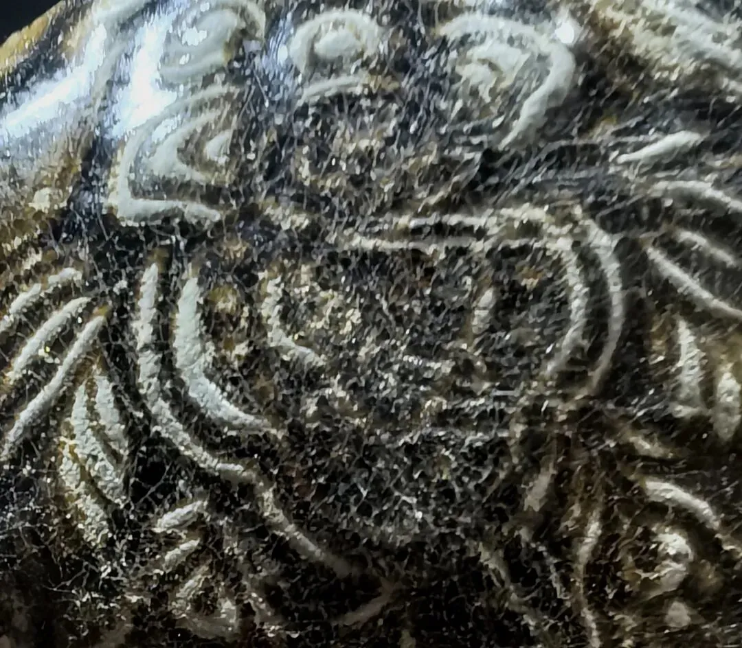 还保留着极具原始风格的土著部落的装扮,更成一个侧面佐证出长沙窑,在特定的时期,对文化多样性的集体表现,同时从另外一个角度来判断,这件器物主要的客户是在东南亚地区, 身披树枝的表现更应该是来自于热代亚热代地区。