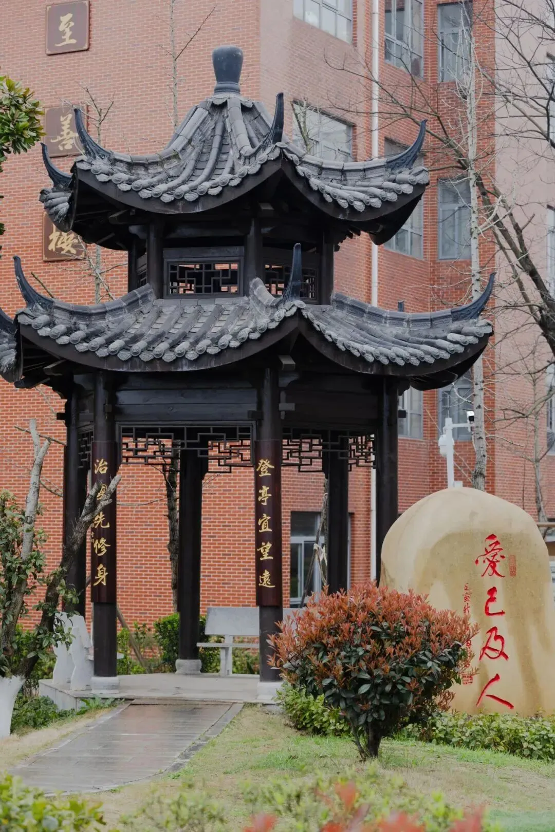 环境育人,校训石上栖息着“坚苦真诚”四个大字,展现着明德的气象,随处可见的“善文化”印记,昭示着我们的教育初衷。遥望岳麓,古书院里藏着湖湘的斯文元气;摩挲大地,湘水流淌的是一江文脉。而湘江之畔的明德启南中学校园中,书声阵阵,书香洋溢,有联曰:启育英才崇大道,南延文脉甲三湘。