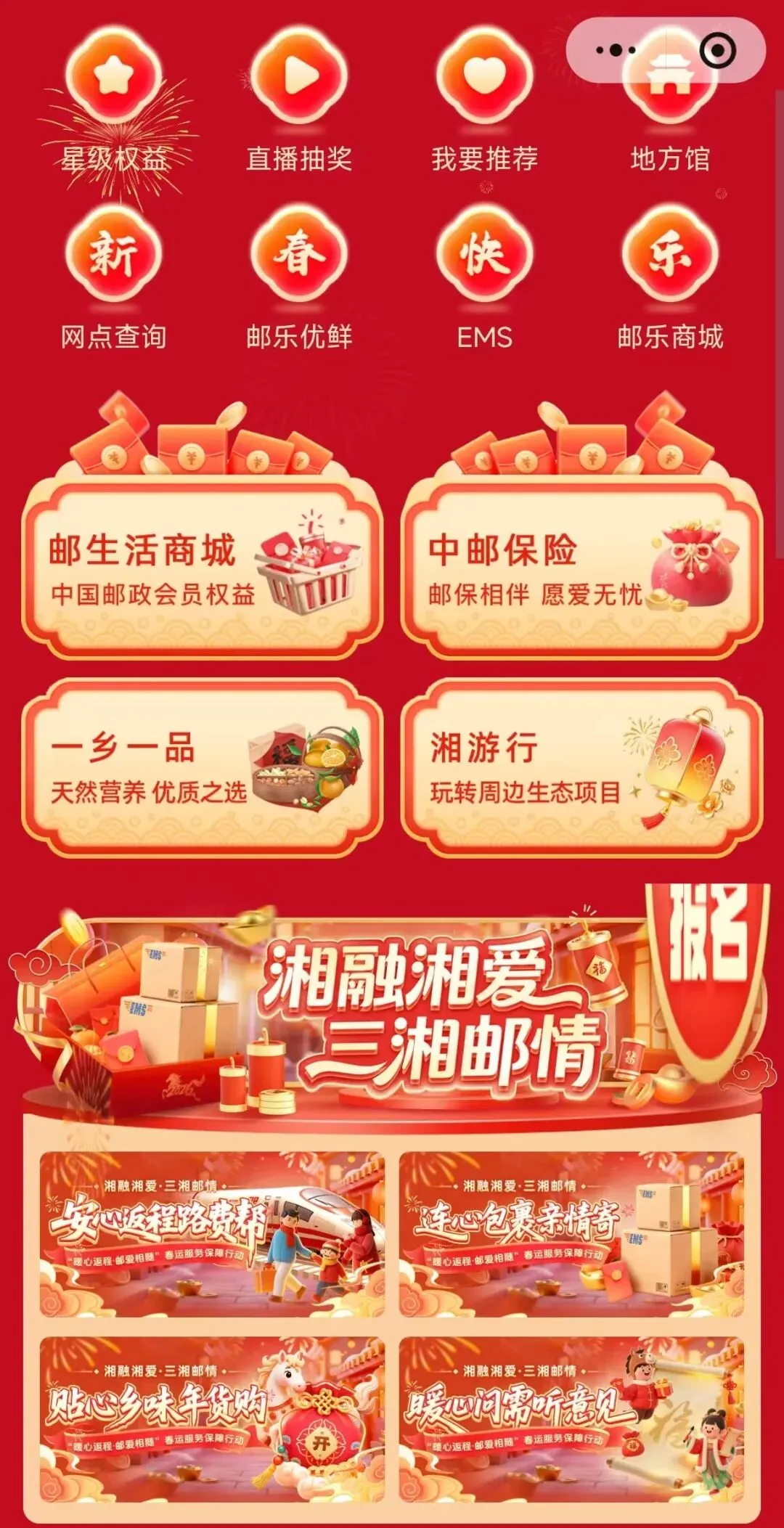 “连心包裹亲情寄”服务开设了“亲情包裹”绿色通道。农民工及家属在指定邮政网点互寄家乡特产、衣物等包裹时,凭“湘邮惠”平台领取的20元邮寄券可直接抵扣资费。此项服务同样面向在湘过节的外省农民工。