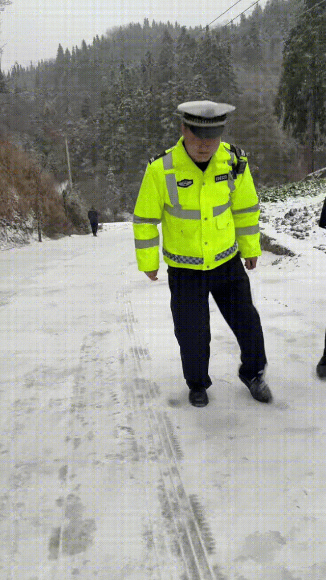 ▲石门、津市大队通过徒步巡查的方式,实时监测路面结冰情况。