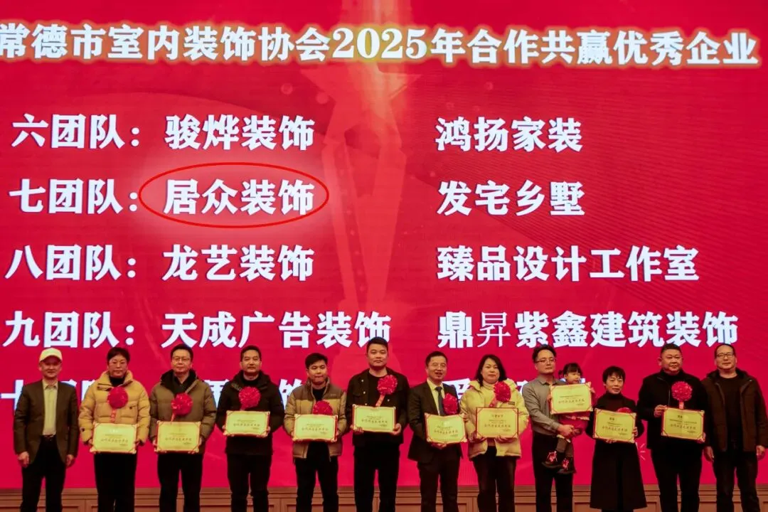 站在新的起点,常德居众装饰将以此次大会为契机,珍惜荣誉、不负重托,在刘权平总经理的带领下,持续深耕施工品质,积极践行行业责任,与全体行业同仁一道,锐意进取、并肩前行,共同推动常德室内装饰行业迈向更高质量、更高标准的发展新阶段!