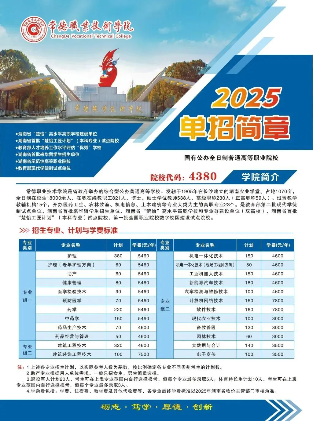 >2026年湖南单招️参考常德职业技术学院2025年单招简章