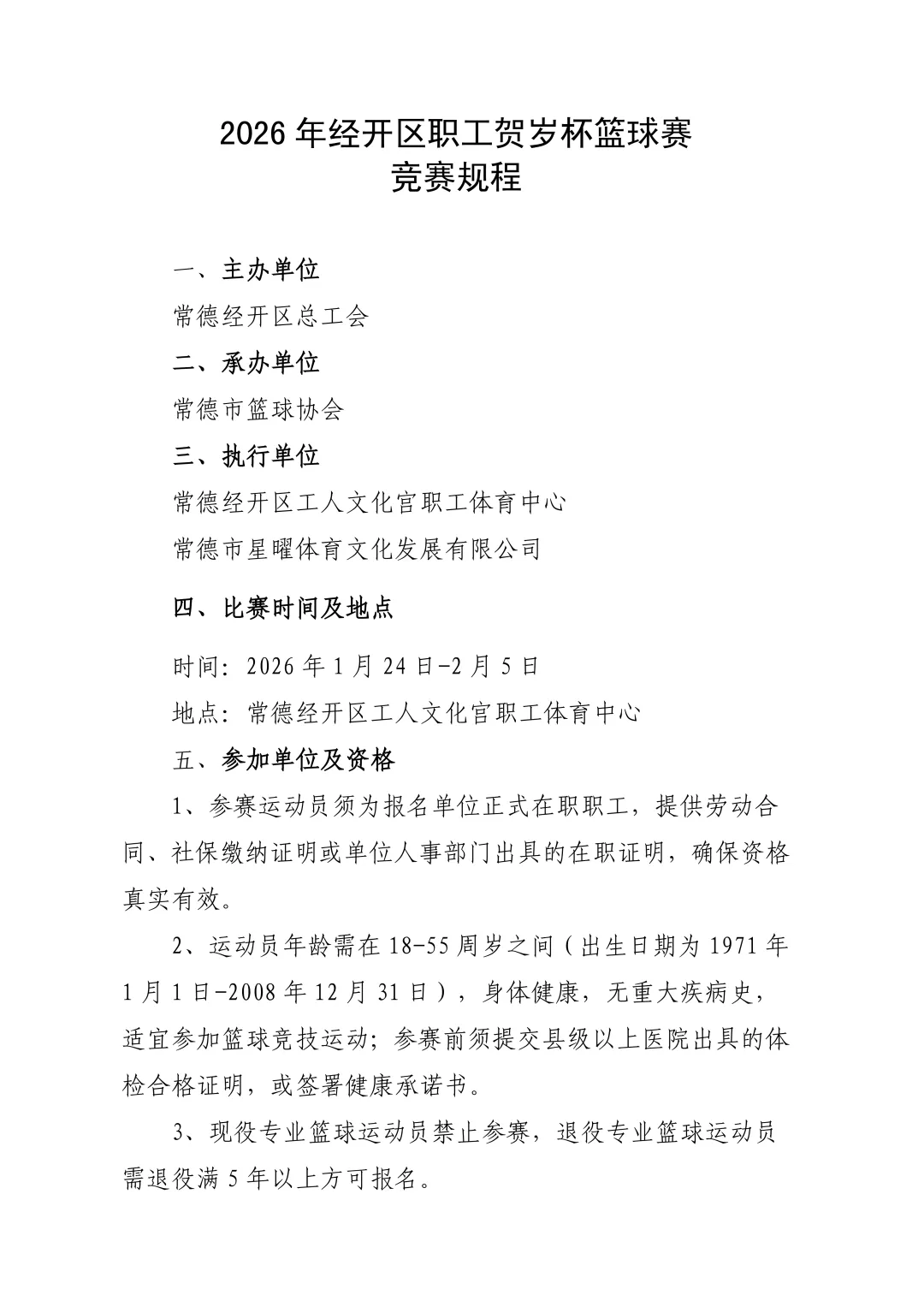 >关于举办2026年常德经开区职工贺岁杯篮球赛的通知