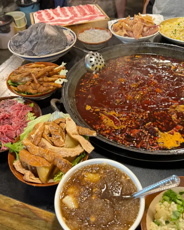 早餐: 一碗小面起步。别去那种装修豪华的店,就找路边板凳摆得多的。面条劲道,油辣子喷香,一口下去,瞌睡全醒。午餐: 来碗豆花饭。豆花嫩得像云,蘸水是灵魂,配碗白饭,踏实。晚餐:老火锅。九宫格是标配,微辣是最后的倔强。毛肚七上八下,鸭肠卷曲就捞,别煮老了。