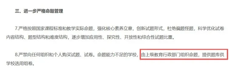 教育部12月8日的通知里明确提到:命题能力不足的学校,可由上级教育部门组织命题,提供题库供学校选用组卷。也就是说,不统一组织考试,但可以统一命题——雨花区目前的安排,是完全符合政策导向的。