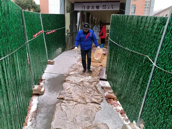 为保障院内道路畅通与出行安全,三福利院后勤保障人员提前到位,在主要出入口、楼道、连廊及坡道等关键区域铺设防滑麻袋、地毯,并设置醒目安全提示。同时加强全院巡查频次,尤其对夜间低温易结冰路段进行预防性处理,确保“生命通道”全天候安全畅通。