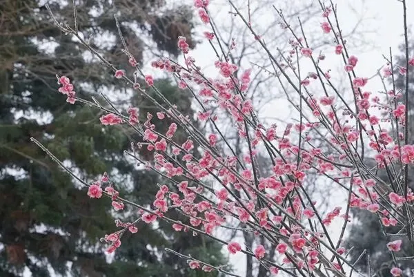 银装素裹中,梅花成为最动人的暖色,几株寒梅破雪而出,与远处的峰林构成壮阔画卷,暗香浮动间引得游人驻足品赏、拍照留念。