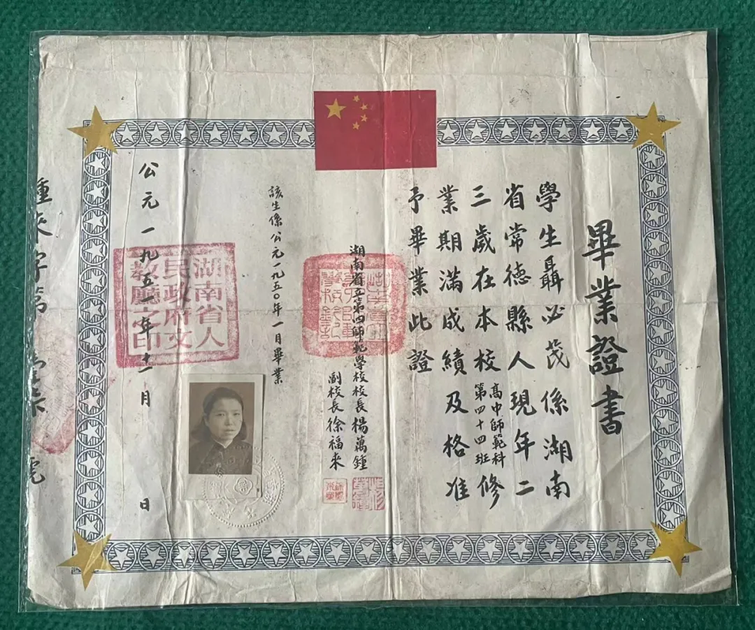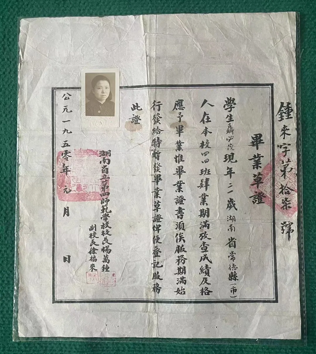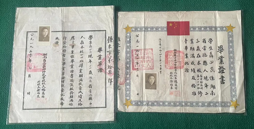 ▲湖南省立第四师范学校聂必茂同学毕业草证与毕业证书一对