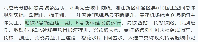 而在今年公布的长沙市《政府工作报告》中,在2025年及“十四五”工作回顾中提到:“地铁2号线西延二期、6号线东延段试运行”。
