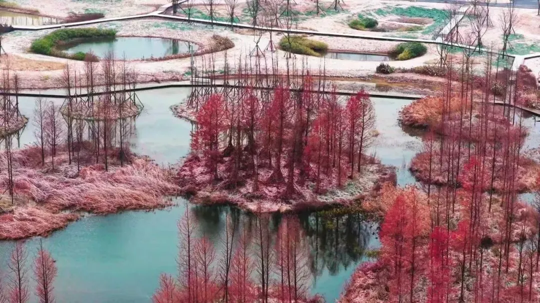 走进大泽湖近自然湿地公园,仿佛踏入了一个银装素裹的童话世界。