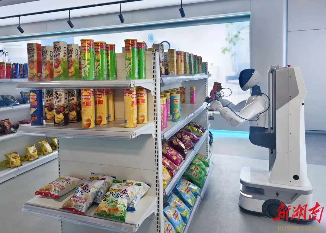 1月16日,湖南具身智能创新中心,机器人在模拟无人超市内配货。湖南日报全媒体记者 范远志 摄