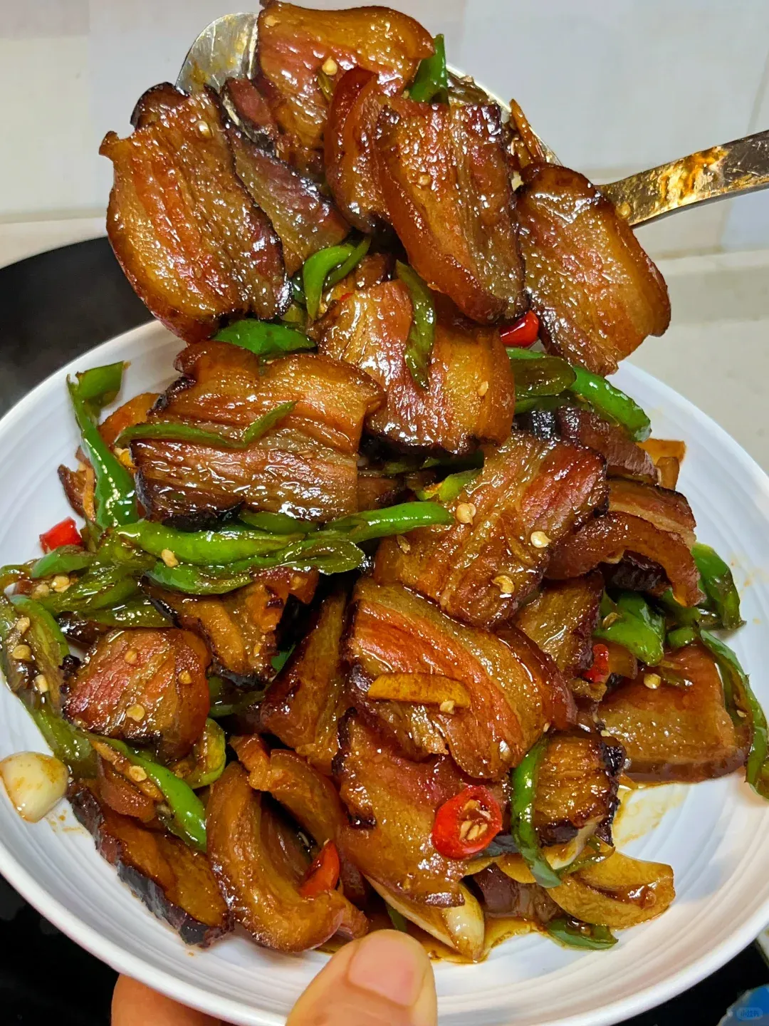 腊肉切薄片,蒸一碗,配米粉,辣椒一泼,饭就多吃两碗。