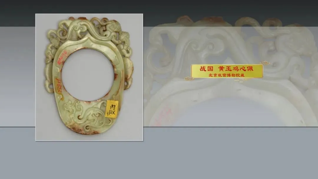 中间这个孔,原来是韘中间套在手上的那个孔,殷墟妇好墓出土了最早的韘,它是套在右手上拉弓用的,因为弓箭容易伤手,鸡心佩就是由韘演化来的,属于把韘铺平了的状态。鸡心佩从战国晚期开始,一直到明清时期都有,但做得最好的时间段应该是汉代,汉代属于鸡心佩的巅峰期。