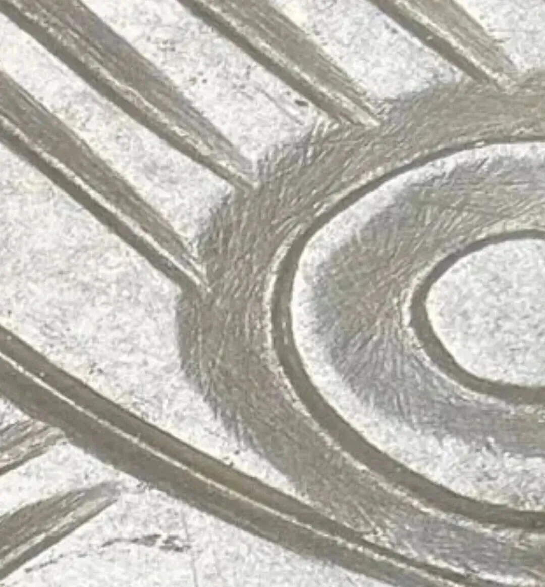 战国晚期到西汉,非常喜欢用游丝毛雕,游丝毛雕是一刀接一刀,非常细,非常浅,而且带毛发的感觉。但我们拿放大镜看了一下,这种刻线在这件鸡心佩上不存在。它的刻线很直,没有断,其实手工刻线会有断刀,这件好像没看到断刀。
