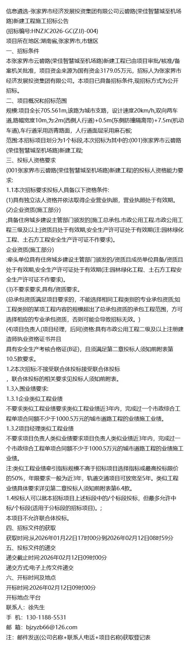 当前位置:首页>张家界>张家界云碧路(荣佳智慧城至机场路)新建工程施工招标