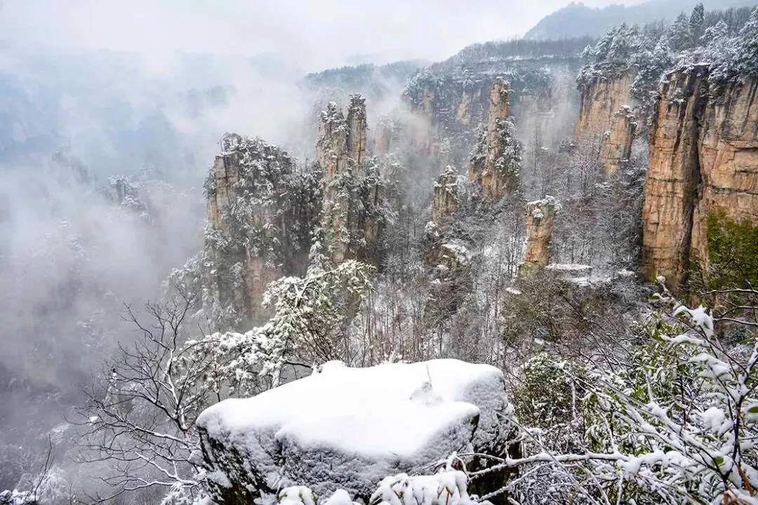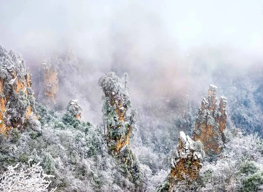 张家界自然风光以峰称奇、以谷显幽、以林见秀。其间有奇峰3000多座,气势壮观,有“奇峰三千,秀水八百”之美称。主要景点有天子山、黄石寨、金鞭溪、袁家界、杨家界等。“张家界四季皆胜景,唯有腊月冬雪景更佳。”张家界雪景风光对于摄影创作来说可谓是一绝, 雪后放晴的张家界,日出、晚霞、云海、雾凇、雪景、奇松、怪石齐现,如诗如画,如梦如幻,美得令人陶醉,让人流连忘返,别有一番胜景,是张家界风光摄影创作之最佳时机。