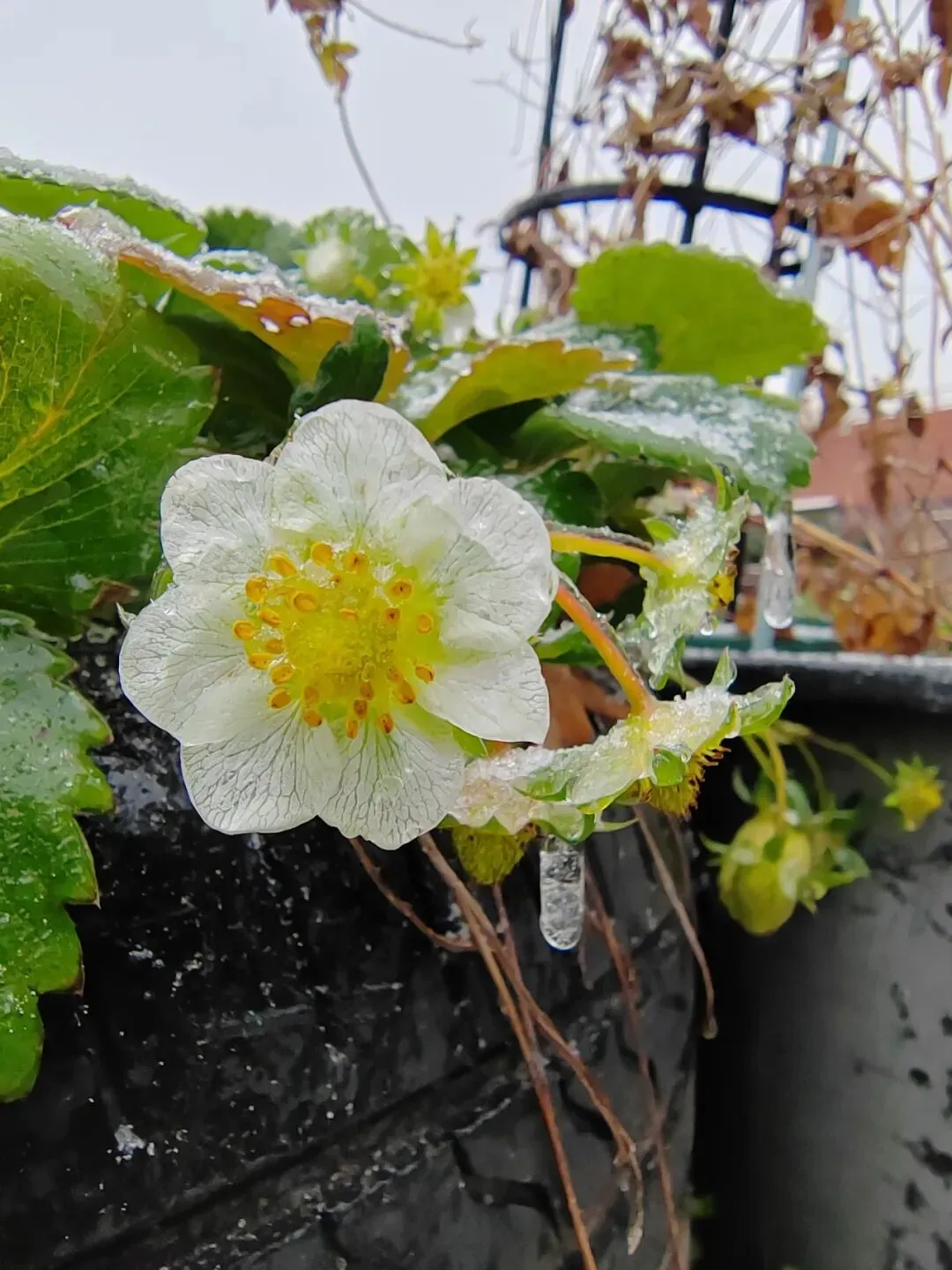 地栽的草莓,在自然的速冻下经历超48小时,2026年1月22日下午4时,完全解冻,毫发无损。