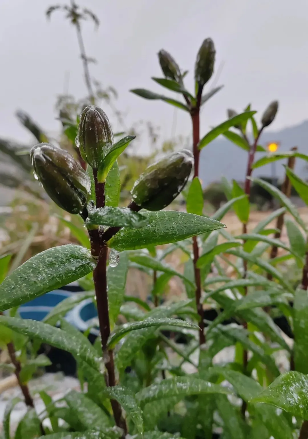 长沙连续两天的冻雨和雪花,让实践基地里的菜苔、百合、草莓等裹上了一层冰壳,让人担心这些娇弱的植物会被冻伤。可等冰层自然融化后,神奇的一幕发生了 —— 百合的花箭挺拔,草莓的嫩叶也几乎没有任何损伤!