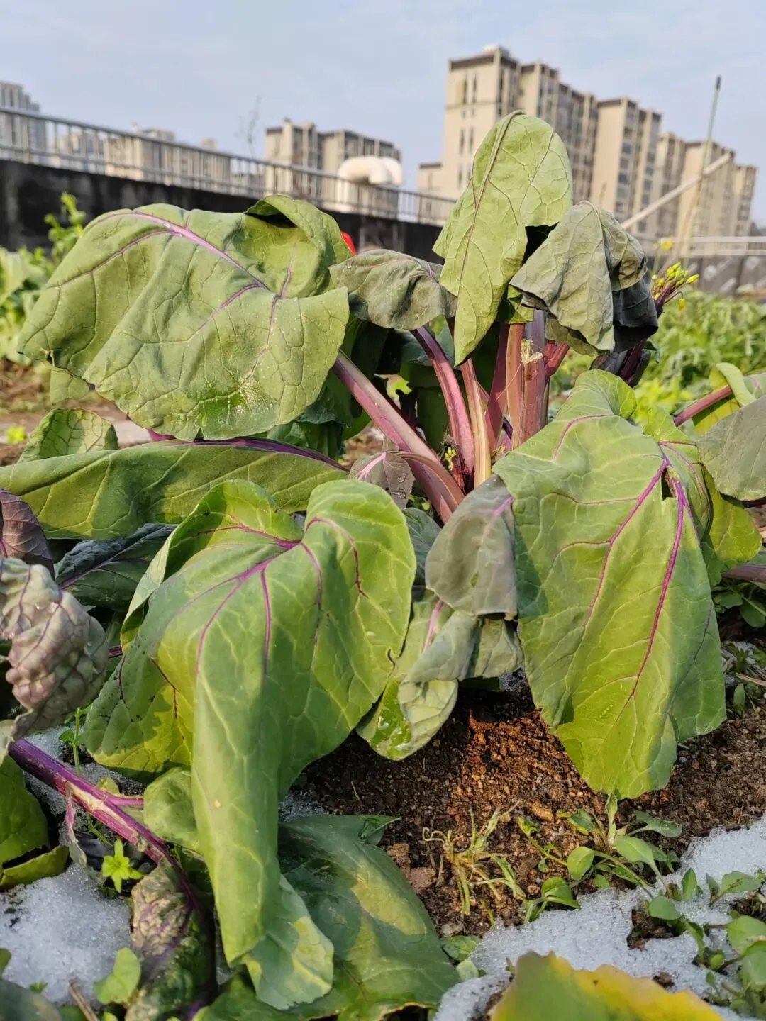 菜苔有些塌房,哈哈,叶片耸拉,不过叶柄和花苔依然坚挺。