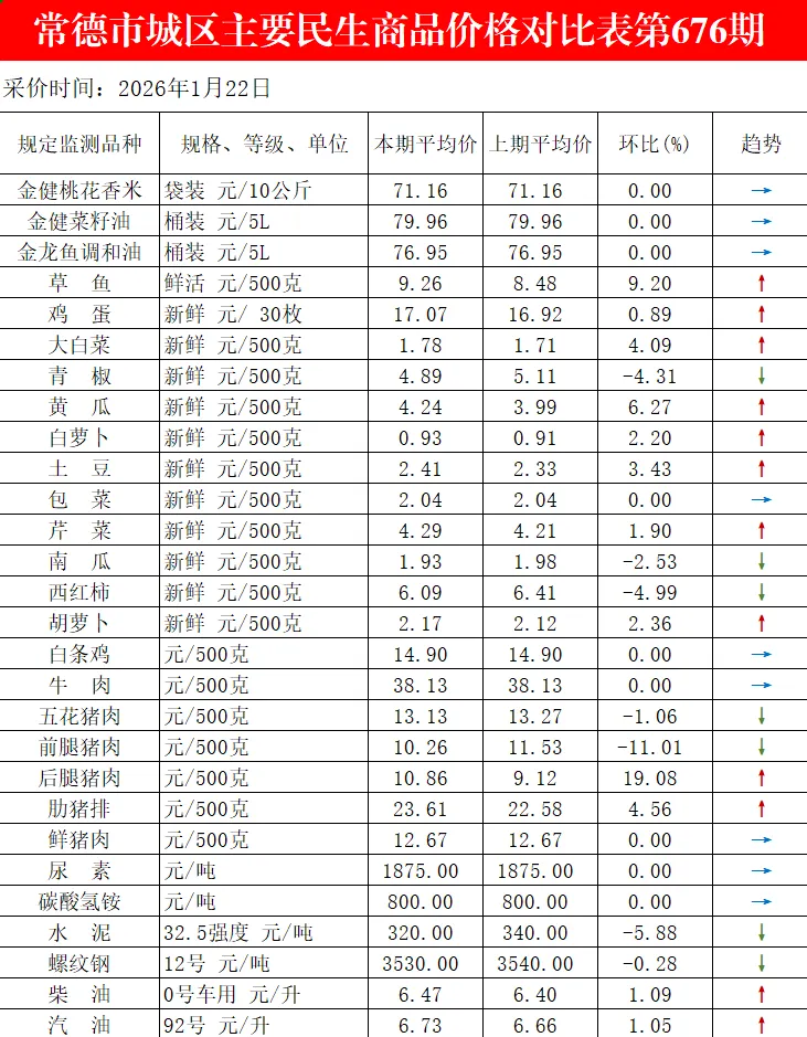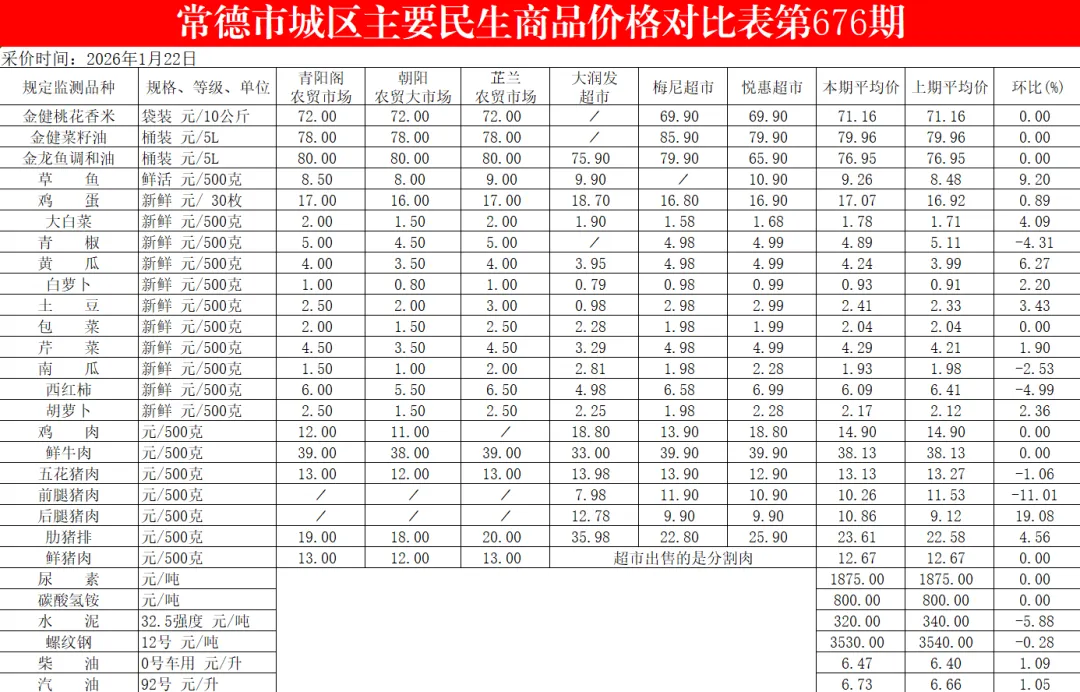 为方便群众了解民生商品市场价格动态,我委通过“常德发改”发布近期市城区主要民生商品价格情况。