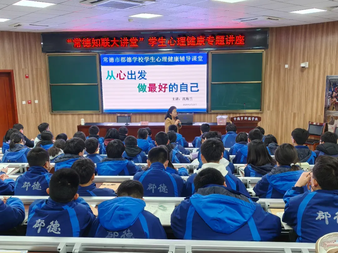 2月23日,联合常德市郡德学校开展学生心理健康讲座,省人大代表、知联会理事沈海兰从“认识自我”“绽放潜能”维度,引导学生提升心理调适能力。