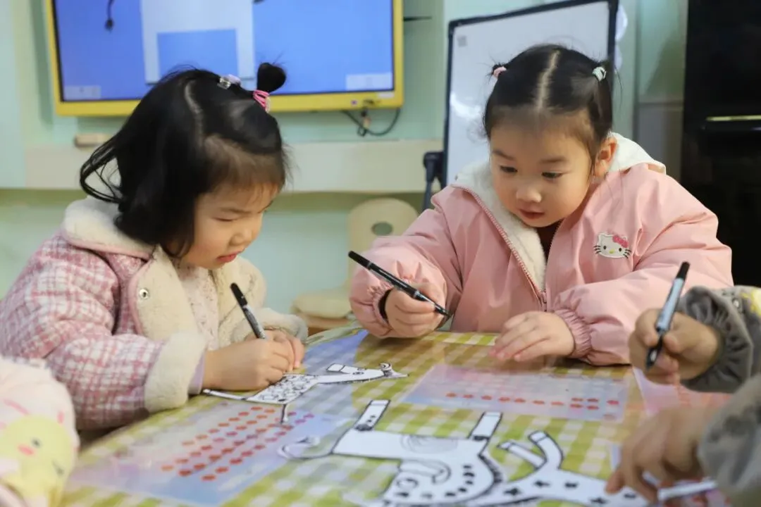《方块小兔过生日》以生日派对故事为主线,孩子们跟着情节帮小动物找回图形礼物盒,根据眼睛形状推理动物身份,还参与图形拼图游戏。活动中,幼儿满眼好奇、积极互动,在趣味情境中熟练分辨圆、方、三角形,充分体验数学活动的快乐。