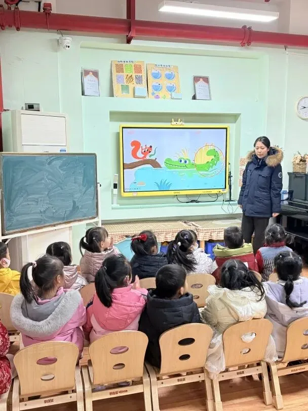 以小松鼠找尾巴主人的绘本故事为主线,引导幼儿探索动物尾巴的奥秘。孩子们跟随故事认识鳄鱼、松鼠等动物的尾巴特征与功能,参与 “尾巴连连看” 游戏,在趣味探究中激发了对动物的探索兴趣,也提升了观察与表达能力。