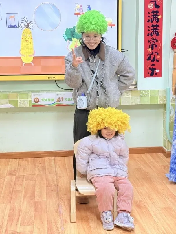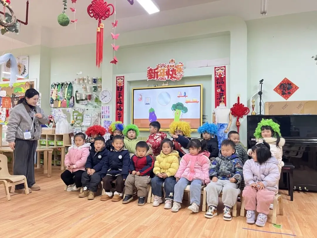 《西兰花理发店》以理发店角色扮演为主线,孩子们跟随音乐节奏,模仿剪发、打理头发的动作,还分别扮演理发师和玉米大哥、白菜阿姨等顾客,在互动问答中锻炼语言能力。活动中,幼儿热情高涨,专注投入角色,在集体游戏中培养了节奏感与表现力。