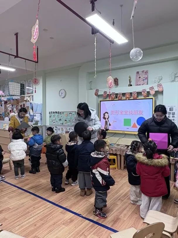 《图形宝宝找朋友》以图形王国探险为故事主线。孩子们通过自我介绍、找同伴、送图形宝宝回家等游戏,初步掌握图形特征并按规则操作。活动中,幼儿满眼期待,积极参与互动,在趣味游戏中感受数学魅力,体验与同伴合作的快乐。